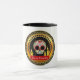 Sugar skull in the centre of a circle of small black with white skulls and three yellow burning candles. "This is from the Day of the Dead also know as Dia de los Muertos sugar skulls .