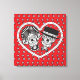 Dia de los Muertos (Day of the Dead) sugar skull couple set on a red heart with white flowers.