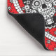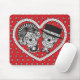 This cute sugar skull couple is set in a heart with flowers on a red background.