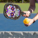 The Day of the Day celebrates the lives of the deceased with food, drink, parties, and activities the dead enjoyed in life. Dia de los Muertos recognises that death is a natural part of life, and the dead would be insulted by mourning or sadness. The most familiar symbol of the Day of the Dead is the Sugar Skull. Pickleball paddle with our spring floral pattern on black and a sugar skull with purple, yellow, blue and pink flowers in the centre.