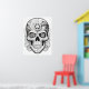 Sugar Skull drawing images, art with flowers around the edge, in black and white, with a white background, on a wall poster for you to color or display.