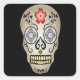 Sugar Skull Halloween Day of the Dead Flowers Square Sticker