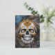 Personalised Halloween Party Invitation. Black, orange and blue sugar skull Halloween postcard invitations.