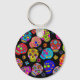 Mexican folk art sugar skulls keychain. Background colour can be customised.