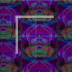 A sugar skull in neon pink and purple colours.