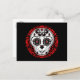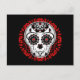 My version of a super cute sugar skull in white, red, and black with lots of elegant accents on a coordinating background. Shown here on a postcard.