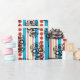 This colourful Mexican sugar skull design is perfect for your Día de Muertos / Day of the Dead celebrations. Featuring a colourful Blue and Red striped and dot background with a black sugar skull.
