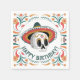 Celebrate in bold style with this editable napkin featuring a sugar skull in a sombrero surrounded by festive floral accents and “Happy Birthday” text. The vibrant teal, red, and gold colour scheme is perfect for Mexican-themed parties, over the hill birthday parties or a colourful fiesta. Personalise the text to make your event truly unique.