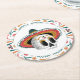 Serve drinks with flair using this round coaster featuring a festive sugar skull wearing a sombrero, set against a teal and gold colour scheme. Perfect for Día de los Muertos celebrations, Halloween gatherings, or colourful fall parties.