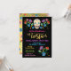 Colourful and pretty Mexican FIesta Bridal Shower invitations. Can change wording to any Fiesta themed event. Features hand drawn embroidered stitched flowers, sugar skull and maracas on a black background. Faux gold foil font and back.