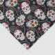 A colourful tissue paper for Day of the Dead festivities, featuring a variety of decorative sugar skulls with flower and swirl accents on an optional black background. If you prefer, change to any other background colour. Search ID725 to see other colour choices and products with this fun pattern.