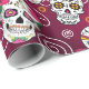A colourful gift wrap for Day of the Dead festivities, featuring a variety of decorative sugar skulls with flower and swirl accents on an optional rose red, textured-effect background. If you prefer, change to any other background colour by simply deleting the red layer. Search ID725 to see other colour choices and products with this fun pattern.
