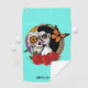 A sugar skull sits in behind a woman wearing day of the dead sugar skull make-up all drawn in an art nouveau style