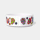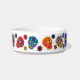 This is a heavy, durable bowl decorated with Tibbies of many colors, the perfect size for hungry/thirsty Tibs. The design is interesting and printing clear.