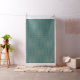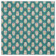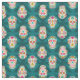 This patterned fabric has a Dia De Los Muertos or Mexican Day of the Dead style with illustrations of sugar skulls in cream with brightly coloured accents in pink, orange, yellow, turquoise blue and light green. The skull graphics are set against a teal chequered background with lace graphic accents.