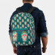 This backpack features Dia De Los Muertos style sugar skull graphics set against a teal background. The front pocket is ready to be personalised with your initials in dark teal lettering.