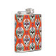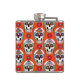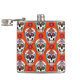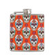 This graphic patterned artwork features an illustrated sugar skull, or calavera, decorated with beads and flowers as well as a Christian cross on each forehead. This motif is commonly used during Day of the Dead celebrations or Dia de los Muertos, a Latin American holiday.