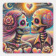 Sugar Skulls in Love Impressionistic Chalk Pastel Square Sticker