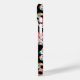 Bright and colourful images of sugar skulls make a fun pattern on this unique phone case. There are several different skull images, all individual in various colours, and placed on a dramatic black background.