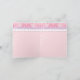 This adorable puppy smiles your thanks to those who have sent your new baby a gift! This Thank You Note coordinates with the invitations and other items in the "Sugar & Spice" Collection. The artwork is hand watercolored and contains a stuffed puppy with purple bow on her neck, a purple pacifier and pink rosebud booties. The background is a soft pink with hand painted white swirls, a hand painted scalloped cross stitch lace and rick rack border overlaying a contemporary swirl heart paper at the top. The interior repeats the background and leaves lots of room for writing or to add any text you would like. There are a wide range of products designed to coordinate for a complete baby set. YOU MIGHT ALSO ENJOY:
