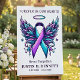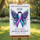 Honor the memory of a loved one with this dignified and compassionate funeral welcome sign. Designed specifically for suicide prevention awareness, this large memorial poster features a hand-illustrated angel wing motif surrounding a purple and teal ribbon—the universal symbol for suicide awareness and mental health support.