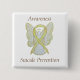 Suicide prevention awareness cause uses a yellow ribbon. The awareness ribbon pin features the painting of a yellow awareness angel ribbon heart on a custom button pendant. The awareness angel pendant notes "Awareness Suicide Prevention". The yellow angel ribbon art lapel pins or buttons can be customised with personalised messages to make great cause buttons for fundraiser pendants, awareness pin gifts, or other special pendant events or awareness lapel pin for the cause's occasions.