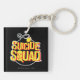 Yellow and Orange Suicide Squad logo within a black bomb on white and black backgrounds.