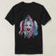 I give wanted to give this a 4 instead of a 5 because these Basic DARK T0shirts run unexpectedly SLIM or Narrow. Which is great if you do not have a potbelly, but I have a paunch. It isn't the shirt's fault that I've got a beer belly. The design and shirt itself is a quality cotton shirt. The color is more of a deep purple, but still a very pretty color. The Basic DARK T-shirts run a bit SLIMMER than the Basic Ts. The neck is a fraction narrower (or seems to be narrower) also. I'm a paunchy middle-aged woman and my neck is 12 inches (31cm) thick and the neckline fell about the same as in the photo of the man, and I had the desire to tug it a bit. So if you're a thick necked man or like loose shirts, be aware these are slimmer shirts. Once I get rid of my lockdown paunch it'll look great. The shirt washed well in cold water with no apparent bleeding. We don't have a dryer, so it hung dry. Did not shrink. Love the colors and the design. The design looks smaller on my shirt than it does on the model on-line. But still, it looks good on the shirt. The printing looks as it does on the model, just the size seems fractionally smaller. Washed garment in cold water, hung dry and design appeared unaffected.