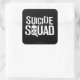 Black and White Suicide Squad logo with a Skull in the letter Q. White letter on black background.