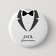 Ask your groomsmen and best man to be apart of your bridal party with this simple and classic bow tie suit design badge. Name and role can be personalised.