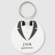 Ask your groomsmen and best man to be apart of your bridal party with this simple and classic bow tie suit design key ring. Name and role can be personalised.