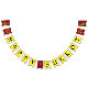 Decorate your Sukkah with this festive banner featuring the lulav, Star of David, and the message "Happy Sukkot".
