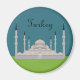 The magnet features a vector graphic of the Sultan Ahmed Mosque in Istanbul, Turkey. The text can be customised as desired.