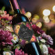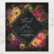 Lush floral arrangements in bright, warm colours ranging from coral and rose pink to golden yellow combine with vignetted, obsidian backgrounds to give the pieces in this elegant wedding suite a dark, moody ambience. This wedding wine label features abundant flowers around a diamond- shaped frame to hold your names, wedding date and a personal message. Search ID829 to see the complete collection.