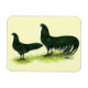 Sumatras are the long-tailed game fowl of Indonesia. The blacks show metallic green sheen over their plumage. The roosters often have multiple spurs.
