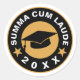 Gold and black Summa cum laude sticker with graduation cap, easily personalise your honour student's graduation year.
