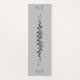 Each side on this grey yoga mat has entwined vines in the colours of summer and autumn. Green and purple and orange and gold representing the changing seasons against a grey background.