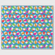 Beach balls in orange, pink, green, red and white on a blue background makes a fun gift wrap for summer birthdays and other occasions.