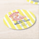 Summer Beach Club Yellow Stripes Birthday Party Round Paper Coaster