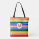 Summer Beach Fun Rainbow Stripes Monogram Tote Bag