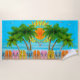 Summer Beach Fun. Take this Vibrant colours beach design with you on your trip to the beach this vacation or your weekend holiday beach trip. This beach scene with the ocean, sea, sun, and sky, palm trees, seagulls, and summer sandals/flip flops all come together nicely to create a tropical atmosphere.
