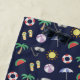 Dark blue casual holiday beach towel with colourful illustrated beach collage.