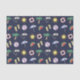Dark blue holiday themed tissue paper with colourful illustrated beach collage.