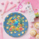 A Paper Party Plate Designed With A Summer Beach Party Theme With Summer Fruits, Drink and Seashells