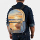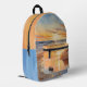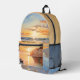 Sunny backpack featuring a painting of a sunset on the beach and on the pocket a painting of a sailboat on a coastal town. Happy vibes for the summer and all year round!