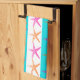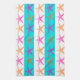 Summer Beach Theme Starfish on Teal Stripes Tea Towel