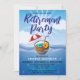 Modern Retirement Party Invitation. Summer Beach Themed. Design features of coconut with decorative umbrella floating on the water. Click customize further to edit this template.