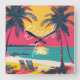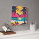 Summer Beach Time Retro Surfer Palm Trees Sunset Square Wall Clock