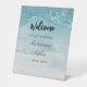Summer Blue Beach wedding Pedestal Sign, minimalist style which can be easily updated with your photo and text. If you need any help personalising this product. Please contact me using this message button below and I will be happy to help.