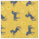 Summer Blue Horses over Yellow Lily Floral Pattern Fabric